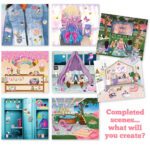 Relax and get creative with stickers! Just choose one of the 8 scenes and add as many (or as few) stickers from the matching sticker sheet as you like to create fun scenes: a trendy tween bedroom, a jacket with pins and patches, a trampoline sleepover, a sweets stand, a locker, a pool party, movie night, and a colorful hairstyle. A fun and refreshing alternative to coloring! Want to start over? No worries, you can remove the repositionable cling stickers and start again. Sticker outside the lines!