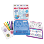 The classic way for aspiring artists to create millions of amazing designs is back and better than ever! The Original Spirograph Design Set features the iconic wheels and rings of the original, re-engineered and updated for today. The kit features a travel-friendly, collectors tin with snap-in storage tray. The precision-engineered Spirograph gears work with the two design pens included in the set, as well as with most standard pens, markers and pencils. The new Spirograph putty holds the Spirograph pieces securely on the paper so that you can create intricately beautiful designs with no holes in the paper! The set also comes with a 24-page design pad and a full-color design guide, which explains the fundamentals of drawing with Spirograph, as well as step-by-step instructions for creating your own designs!