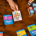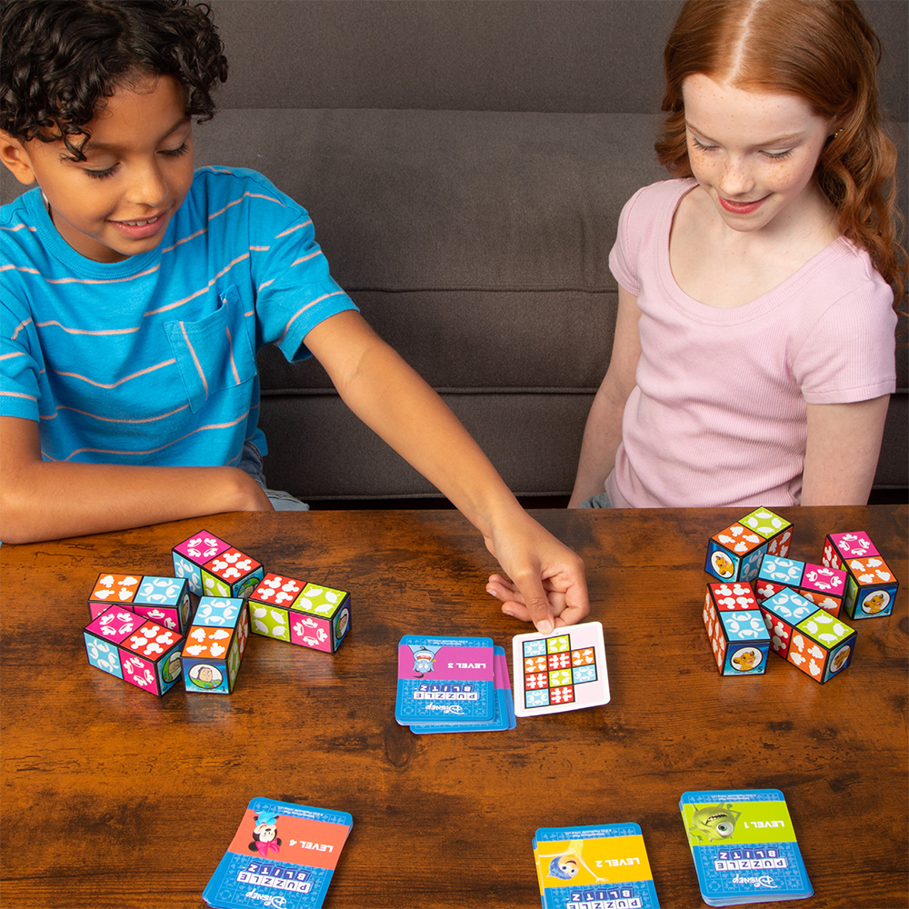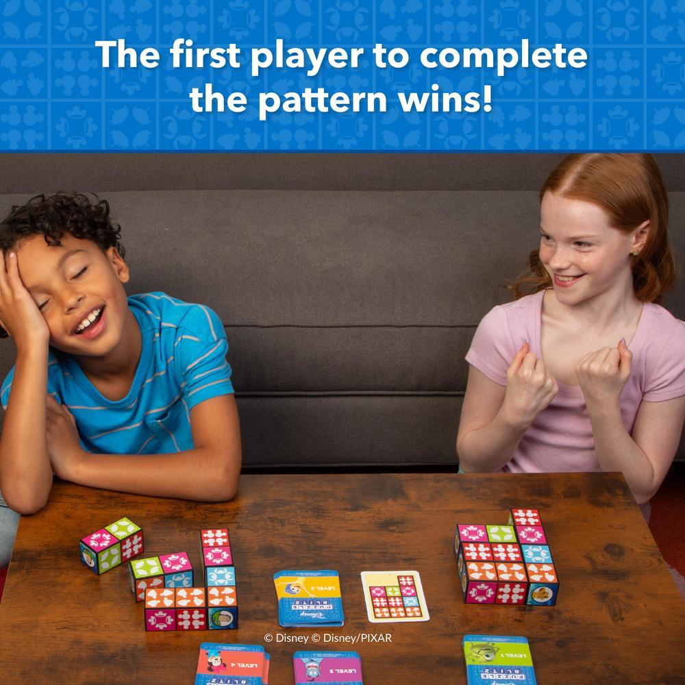 The fast family puzzle=matching game for all ages! Race to match your blocks to the card before the other players! When you’ve completed the pattern, yell “MATCH” to win!