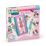 The classic mix-and-match fashion drawing set is back! The Fashion Plates My Style design set makes it easy and fun for aspiring designers to create their own fashion designs. Create one-of-a-kind looks by combining the different rubbing plates together into the Fashion Plates tablet. With just a few passes of the rubbing crayon, your design transfers to your sketch paper. Adding colors and sticker detail to your new look is a snap with the included artist’s pencils and the fashion textures built into the back of each Fashion Plate. The stylish portfolio tote stores your tablet, plates, and tools making it easy to take your designs and fashions on the go!