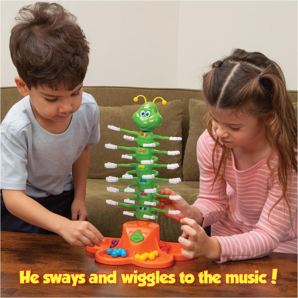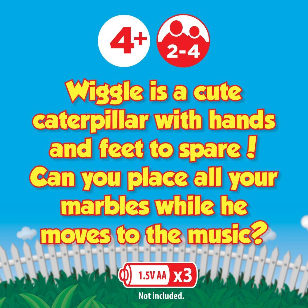 Giggle Wiggle is the adorable caterpillar with hands to spare! Press the button to make him sway to the music, then race to place all your marbles in his hands. But watch out! His dancing will knock your marbles out of his hands, and you’ll have to pick them up and start over! Be the first player to get all your marbles stacked in Giggle Wiggle’s hands to win the game! This adorable children’s game is for 2-4 players ages 4 and up!