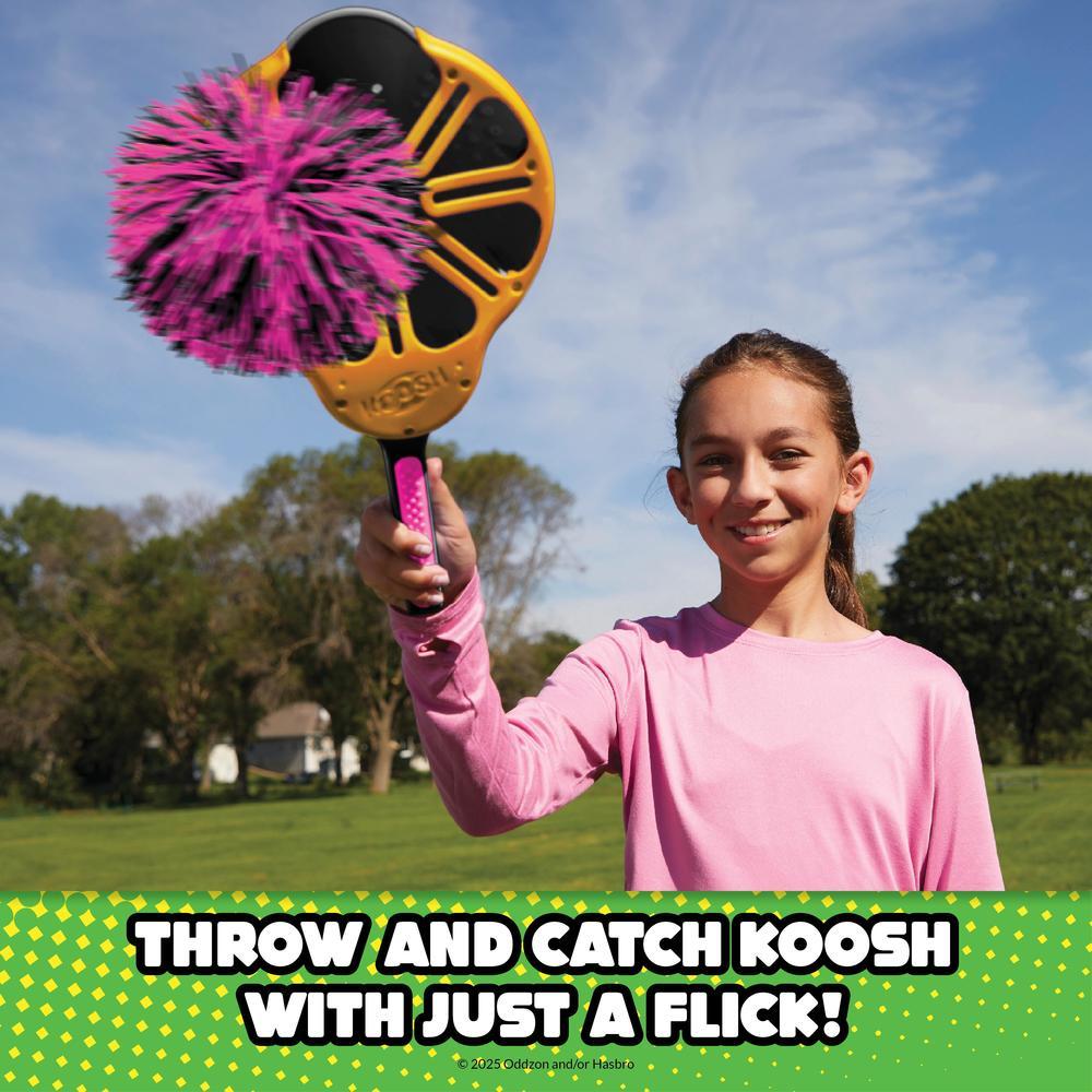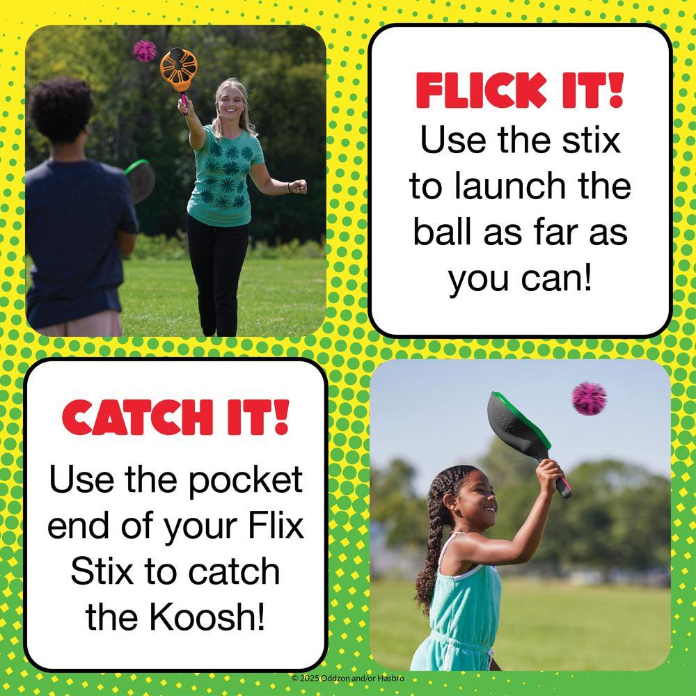 Test your skills head-to-head with Koosh Flix Stix, now in NEON! The fun of lacrosse meets the innovation of Koosh for easy catching and gameplay. The large pocket on the Flix Stix combined with no-bounce Koosh balls makes catching and throwing a breeze! Challenge your friends, pass Koosh back and forth, and see how far you can flick it! Koosh was originally developed as an easier way to play catch, and this tactile wonder is now a classic toy! There is only ONE ORIGINAL KOOSH, and it’s built on decades of quality construction.