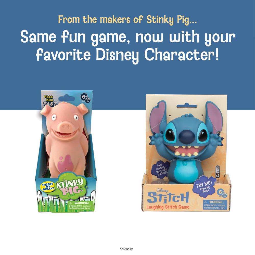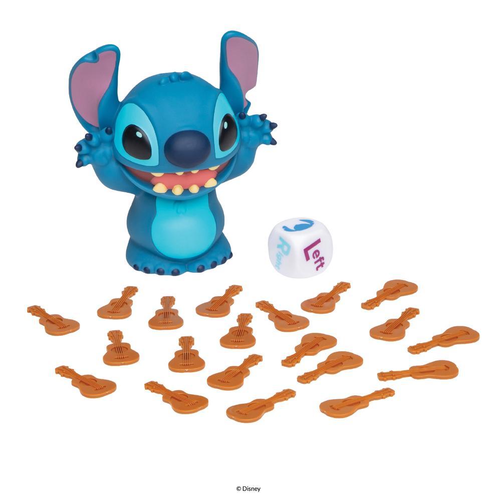 Press Stitch’s belly to start the music, then roll the die to see which way to pass him…but hurry up! If you’re holding Stitch when he laughs, you’ll have to take a token. The player with the fewest tokens is the winner! For 2 or more players ages 6 and up. Comes with an electronic Stitch that plays music and laughs, 20 ukulele tokens, a die, and rules. 2 AAA batteries are included.