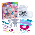 Friendship is in the making with Make A Friend Koala! Prepare for cuteness with this adorable stuffie kids can stitch and stuff themselves! With a few simple instructions they can stitch up and dress up their very own Koala friend with the kit’s ready-to-wear clothes and easy-to-make accessories. This adorable kit comes with 1 drawstring bag, 28 pc felt, 9 pc glitter foam, 20 plastic beads, 10 metal rings, 1.5 yds acrylic yarn, 1.4 yds polyester ribbon, 1 plastic needle, 0.4 oz polyester stuffing, 2 yds elastic cord, 1 pc printed paper, and instructions.