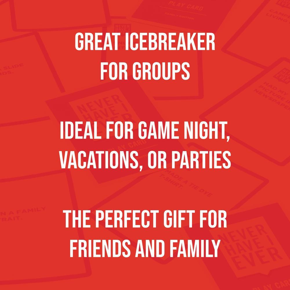 Never Have I Ever Family and Teen Edition Card Game: Prepare for endless laughter and bonding moments with the Never Have I Ever Family and Teen Edition Card Game. Designed for families and teenagers alike, this interactive game is bound to create unforgettable memories and strengthen your connections. Includes 224 cards and 6 paddles. For 2-6 players ages 8+ and above