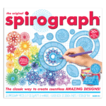 The Original Spirograph Kit with Markers combines the principles of art and mathematics that has delighted generations! This craft kit has precision engineered wheels and rings to work with most any pen, marker, or pencil, creating amazing spiral art! Inspired by the design of the original 1965 Spirograph, this set will entertain the whole family for years to come. This Spirograph set has everything you need to make endless amazing designs! Includes 19 wheels, 2 rings, 1 rack, 8 markers, spiro-putty, design paper, 14 page guide book, and storage tray. For ages 8 and up!