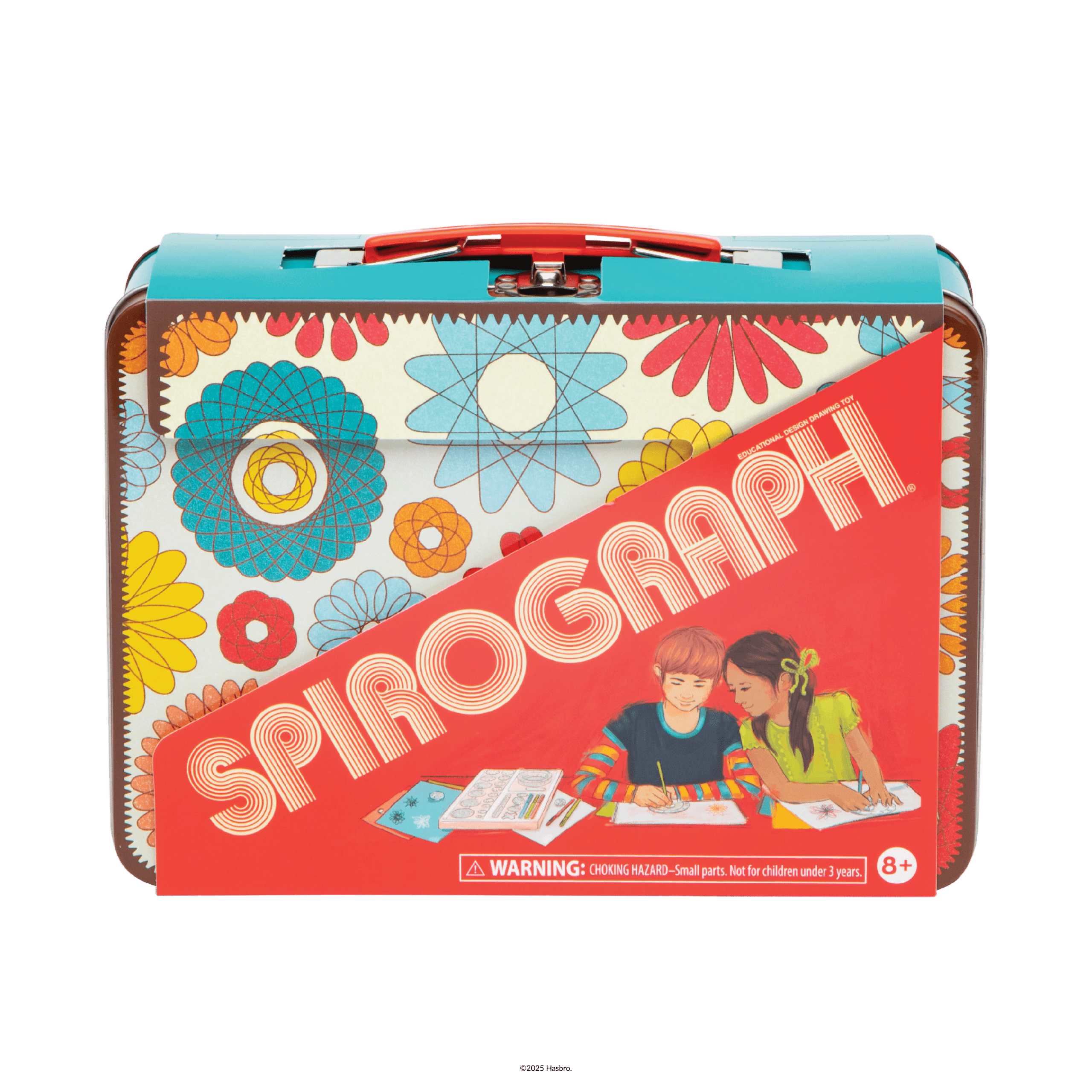 Enjoy the classic way for aspiring artists to make endless amazing spiral art designs in a collectible retro lunchbox! The iconic wheels and gears from the 1960s are re-engineered for the modern day to work with most standard pens, markers, and pencils for endless possibilities. Everything fits neatly into the lunchbox, so you can take the fun with you on the go! This kit features a retro-inspired lunchbox, 7 Spirograph pieces, 6 markers, 10 sheets of design paper, and a design guidebook. This kit is designed for aspiring artists ages 8 and up!