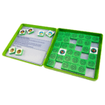 The convenient 6 3/4″ square tin case makes it easy to slip the games into most bags to take everywhere and keep kids entertained on a trip, waiting at the doctor’s office, dining out, while stuck in traffic or just visiting grandma’s house!