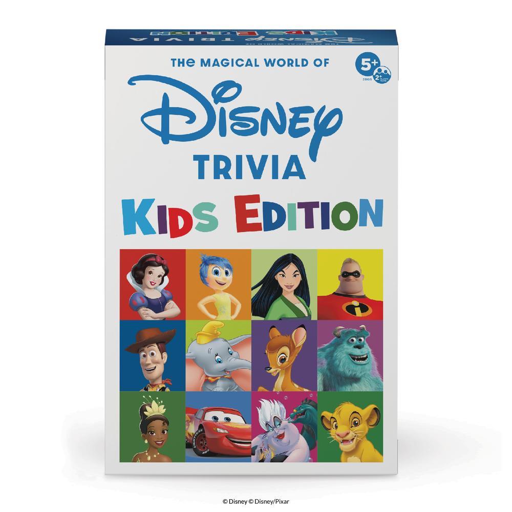 The Magical World of Disney Trivia: Kid’s Edition is the perfect game for your next family game night! This game features questions about a wide array of Disney and Pixar characters, including classic characters like Mickey Mouse and Disney Junior favorites like Doc McStuffins! Each card includes a picture of a character on one side and questions about that character and their movie on the other for a trivia experience that’s perfect for younger players. Race to be the first player to earn a Mickey Head Token in each color and cross the finish line to win! Included in the game is a fun Mickey Mouse-shaped gameboard, 600+ questions, 20 tokens, a die, 4 iconic Disney and Pixar character movers, and easy-to-follow rules. For 2 or more players ages 5 and up.