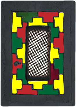 • Stack the cards with symbol face up so the largest number is on the bottom and number 1 is on top. There should be two stacks of cards: 1 - 27 and 25 - 54. Place in a plastic baggie with the decoder, solution sticks and raft puzzle.