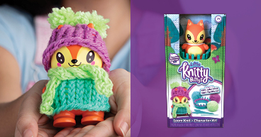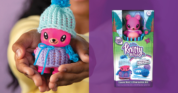 Welcome to the cozy, crafty world of Little Knitty Bittys! It's easy to knit with Knitty Bittys and make adorable outfits for your new friend! Each Knitty Bitty comes with 3 styles to create along with a round knitting loom in the perfect size for your cozy friend. Mix and match outfits between the Bitty's to have a whole wardrobe of adorable outfits!