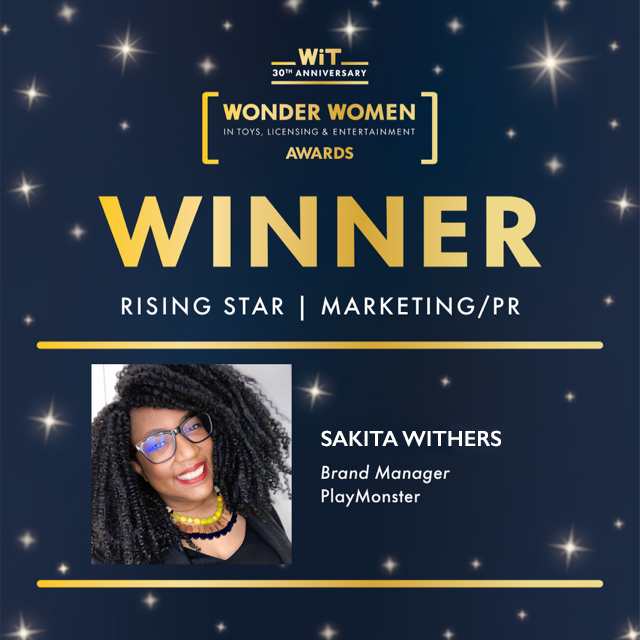 Sakita Withers, Brand Manager at PlayMonster, says: “To be awarded WiT’s Rising Star Award is an absolute honor. Women in the industry have come so far over the past 30 years, and it’s gratifying to see recognition for our hard work! I first fell in love with toys in my late grandmother’s playroom. From He-Man to Barbie, she encouraged discovery and play, and was truly a role model in all respects. This award was made possible thanks to her.”