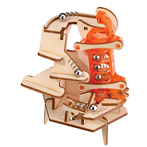 New for 2019 will be 4-Bar Link™ in the Triple Play™ series, featuring smaller models that will attract new builders (Tinkineers) with a lower price point and satisfy existing fans with new models to build and collect! Triple Play also features added plastic components that give the wood model a pop of color! Like all other Marbleocity kits, 4-Bar Link also includes a full color comic story, to teach important STEM lessons and relate physics and engineering principles to real life.