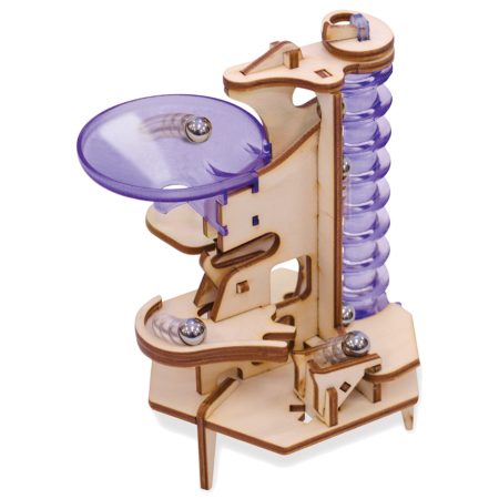 New for 2018 will be the Triple Play™ series featuring smaller models that will attract new builders (Tinkineers) with a lower price point and satisfy existing fans with new models to build and collect! Along with a slightly smaller size, Triple Play’s also feature added plastic components that give the wood model a pop of color! The first two models in the series, Chaos and Archimedes Screw, feature fun elements like a helix and funnel.  Like all other Marbleocity kits, Triple Play models also include a full color comic story, to teach important STEM lessons and relate physics and engineering principles to real life.