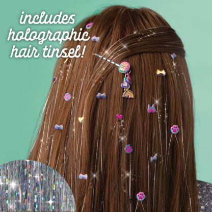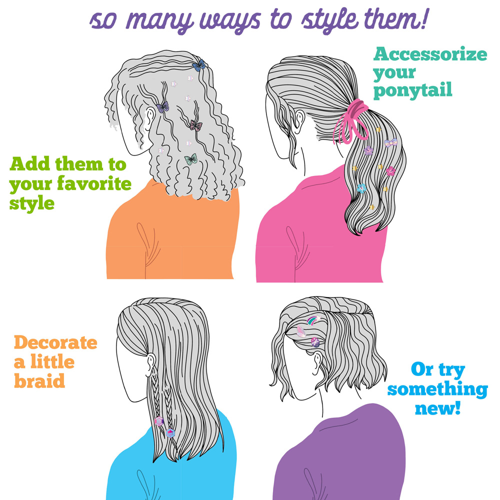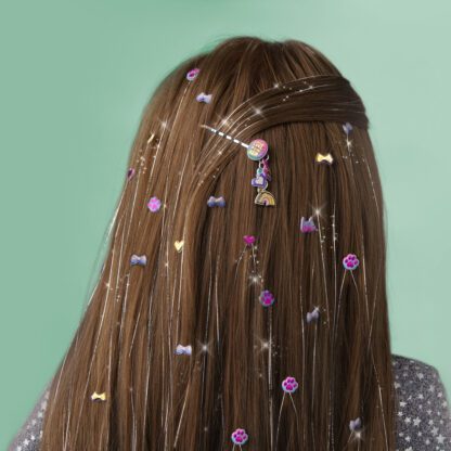 Add some extra sparkle to your hair with simple, fun, and pretty fold-over hair charms. Just fold and stick charms to your hair: they’re easy to put on and remove!