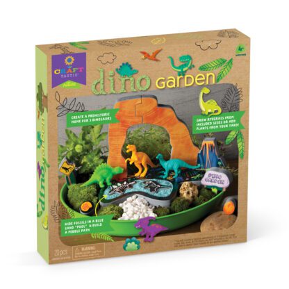 Go back to when dinosaurs roamed the earth with a Dino Garden! Design your prehistoric environment for all your dinosaurs! Use the sand pit to bury and unearth fossils, and grow the included Ryegrass seeds, or add plants from your own garden. Take care of your plants and play with your dinosaurs—the perfect combo of growing and playing! Comes with everything you need to make a Dino Garden!
