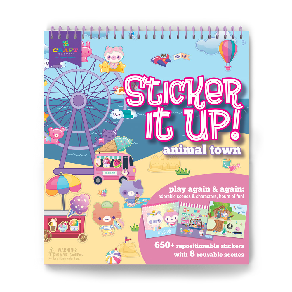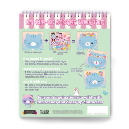 Let your imagination run free with adorable scenes and dress-up characters! Just choose one of the eight scenes and add as many (or as few) stickers from the matching sticker sheet as you like to create fun scenes: a sweet shop, beach, vet office, treehouse, campground, dress-up characters, and animal faces. A fun and refreshing alternative to coloring! Want to start over? No worries, you can remove the repositionable cling stickers and start again!