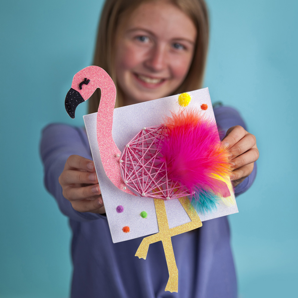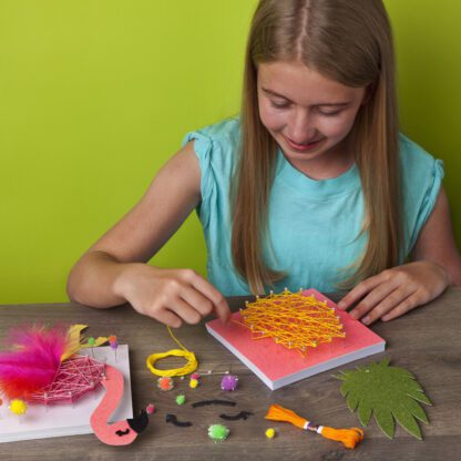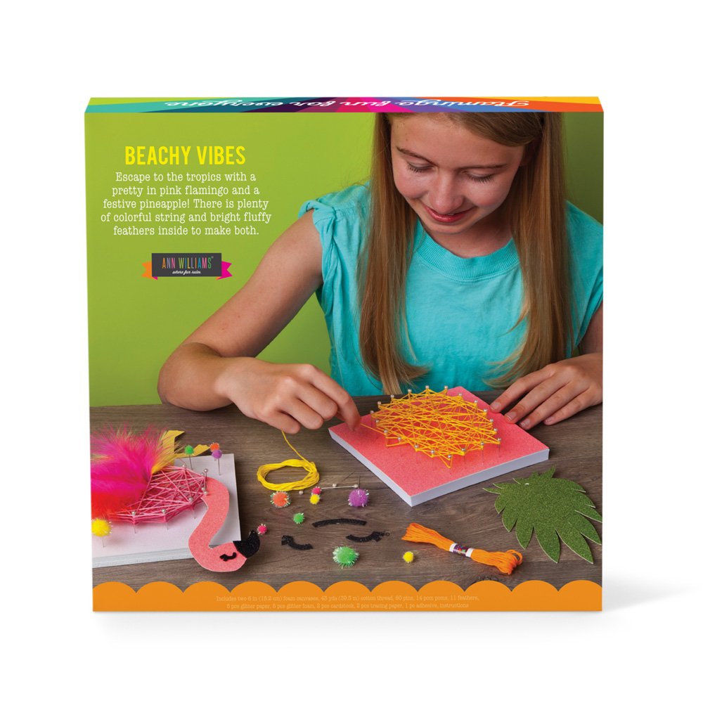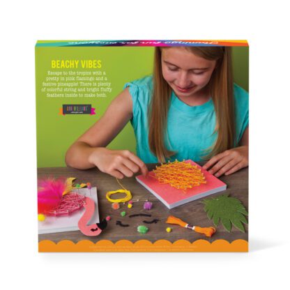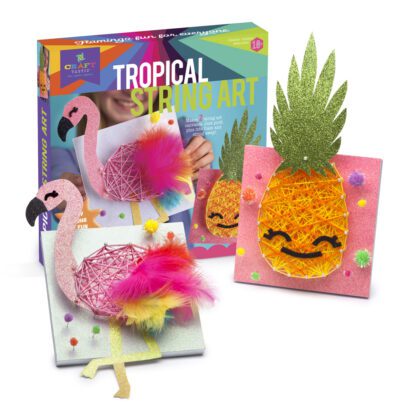Say Aloha to fun with this bright and colorful flamingo and pineapple string art kit! You’ll find all the string, sparkly pom poms – even pink fluffy feathers – to make 2 tropical pieces of art. So sit back and relax, everything need to get started right away is right here. It’s fun in the sun!