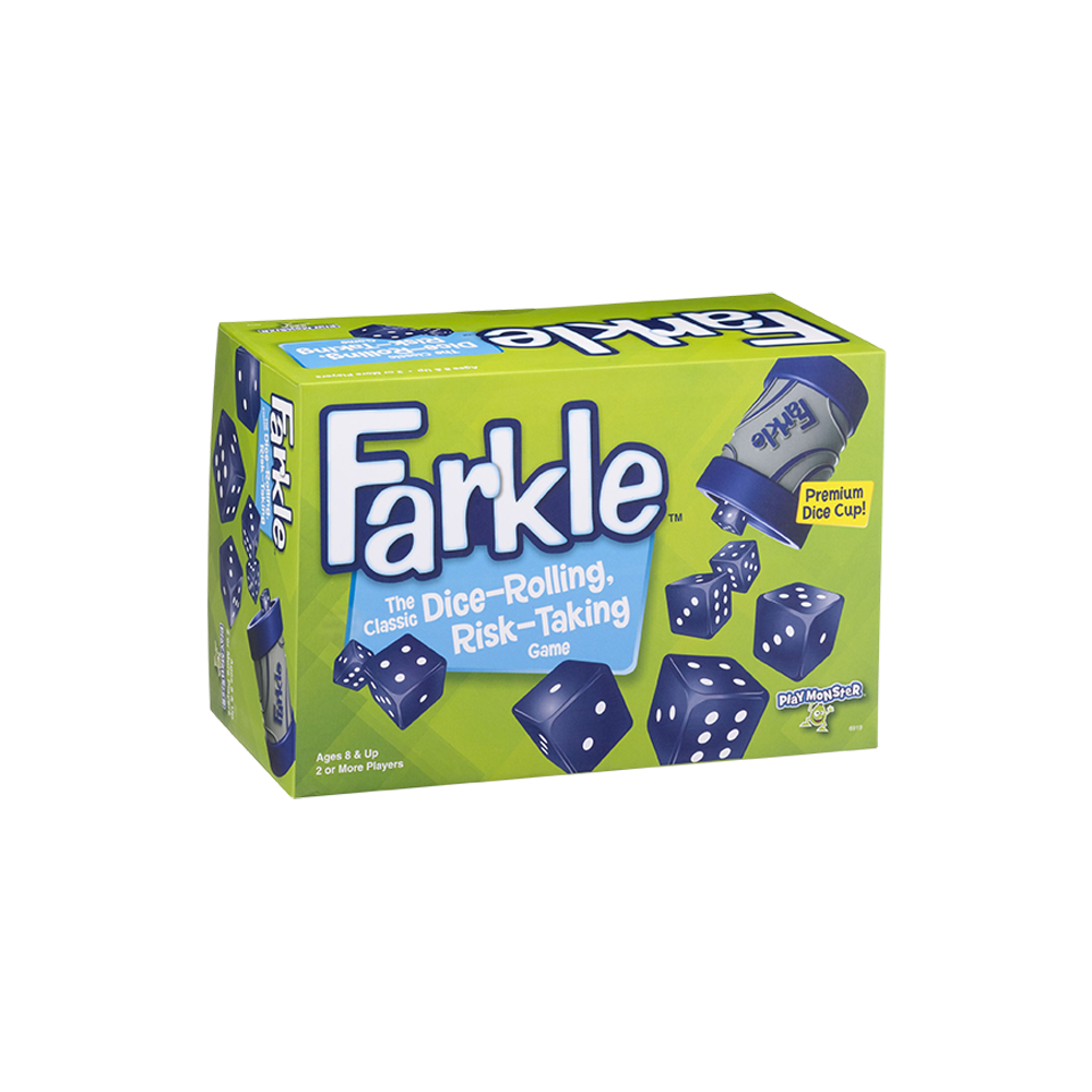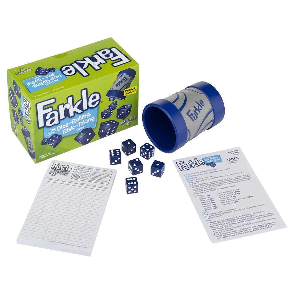 Become a Farkle fanatic with this Classic Dice-Rolling, Risk-Taking Game that comes with its own premium Dice Cup. The new dice cup is perfect for shaking to your heart’s content and slamming down on the table! Take a risk and keep rolling to build your score. Or play it safe so you don’t lose your points in a Farkle. It’s a fight to the finish in this fabulously fun game of strategy and luck! For 2 or more players.