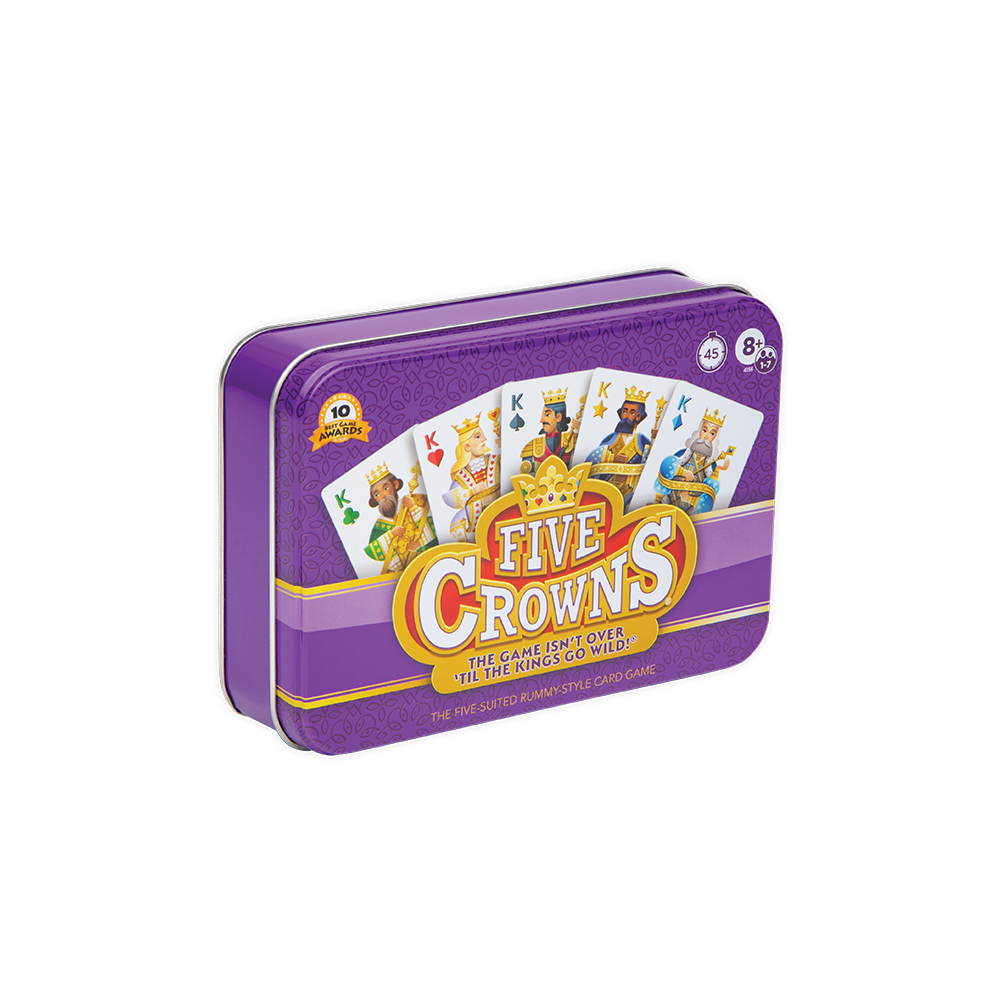 Five Crowns is the perfect game that everyone from friends to the whole family will enjoy playing over and over again! This award-winning game features a one-of-a-kind deck and rotating wild cards that keep everyone on their toes! Each round provides different card hands and different ways to play various combinations to keep your score low and your opponents’ scores high. And the game isn’t over ‘till the Kings go wild! For 1 to 7 players, ages 8 and up