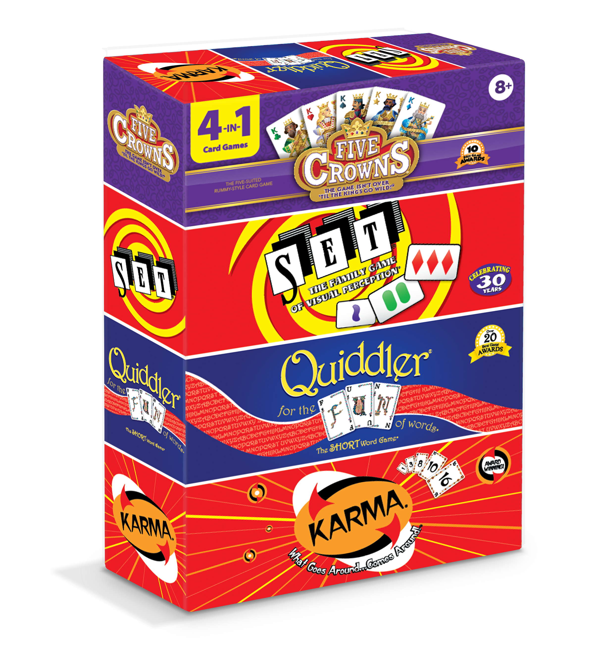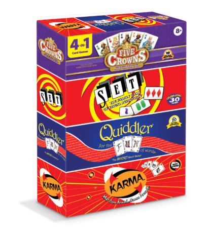 Grab all of the classic games in the Five Crowns library with this bundle of Five Crowns, SET, Quiddler, and Karma! Each game is perfect for family game night, whether you’re looking to boost your brain with SET or test your fortune with Karma! There’s something in this set for every card game lover depending on your mood and the number of players.