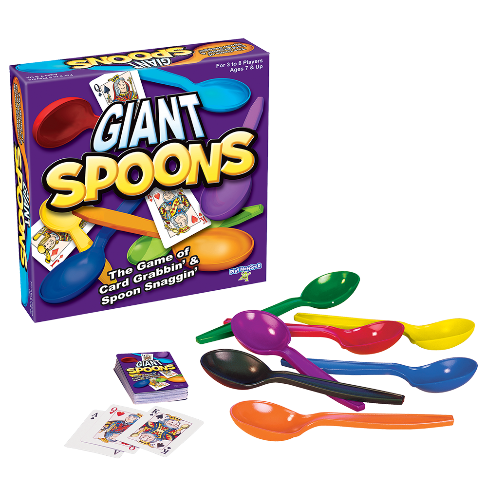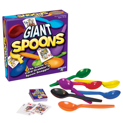 Play this classic card game that’s bigger than life! Race to get four cards of a kind…then you’d better snag a giant spoon fast if you want to stay in the action! Each round the slowest player will be left empty-handed and is out of the game.