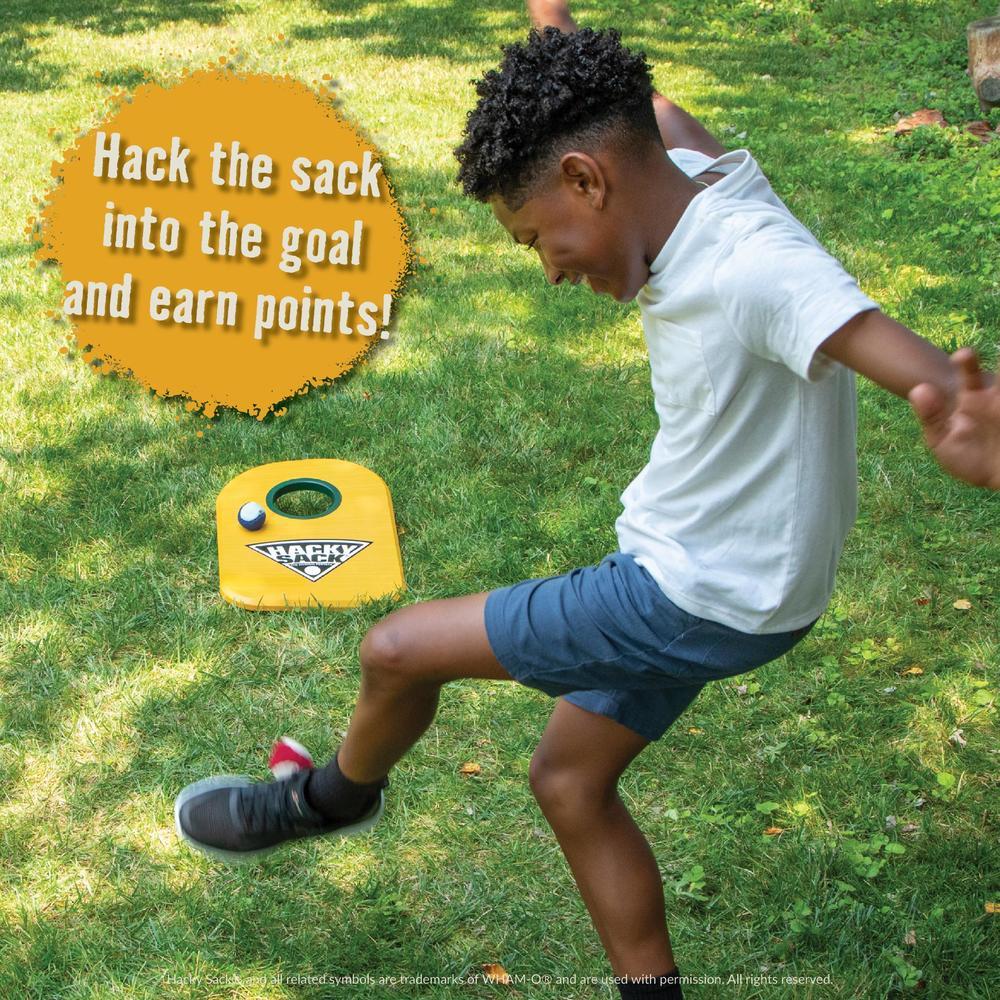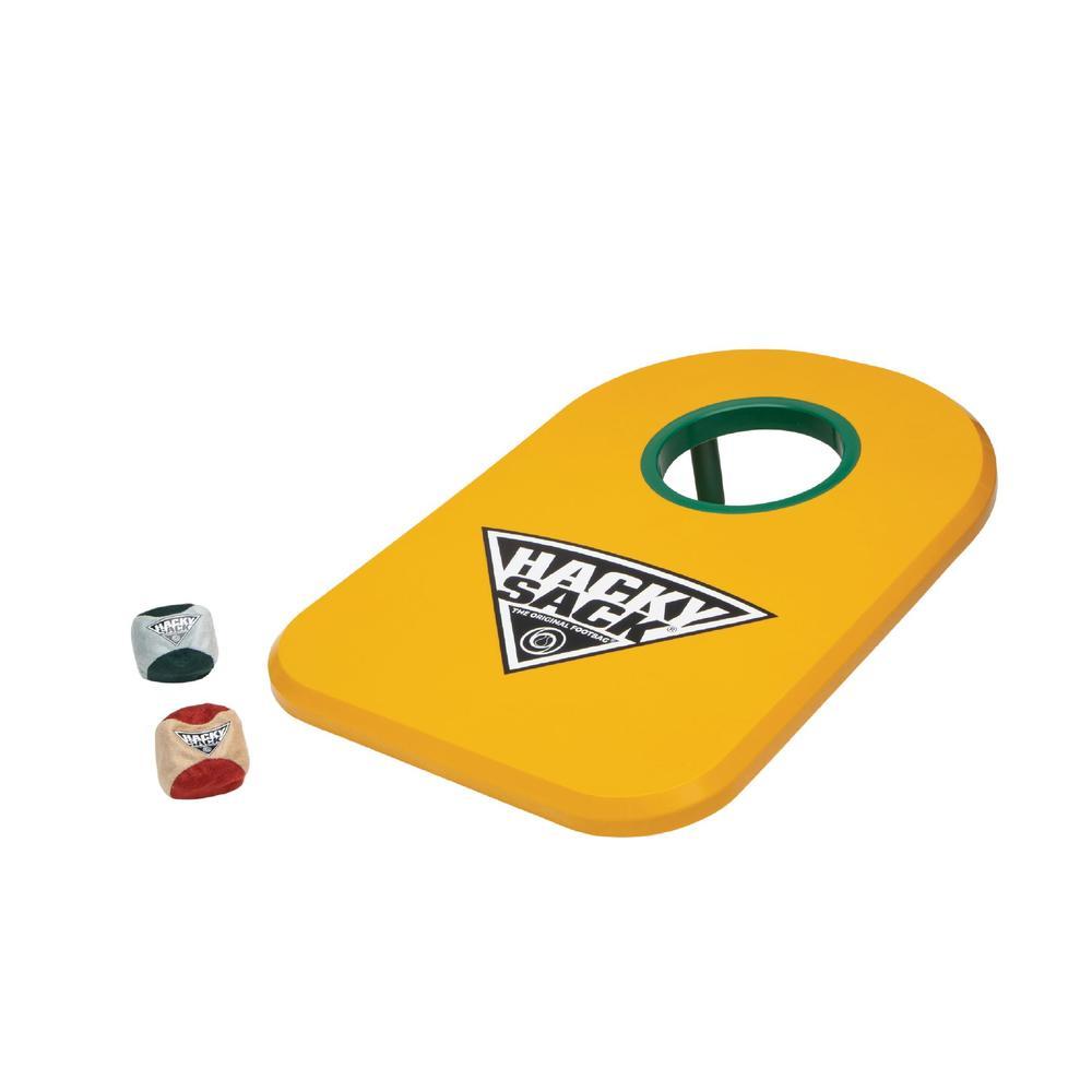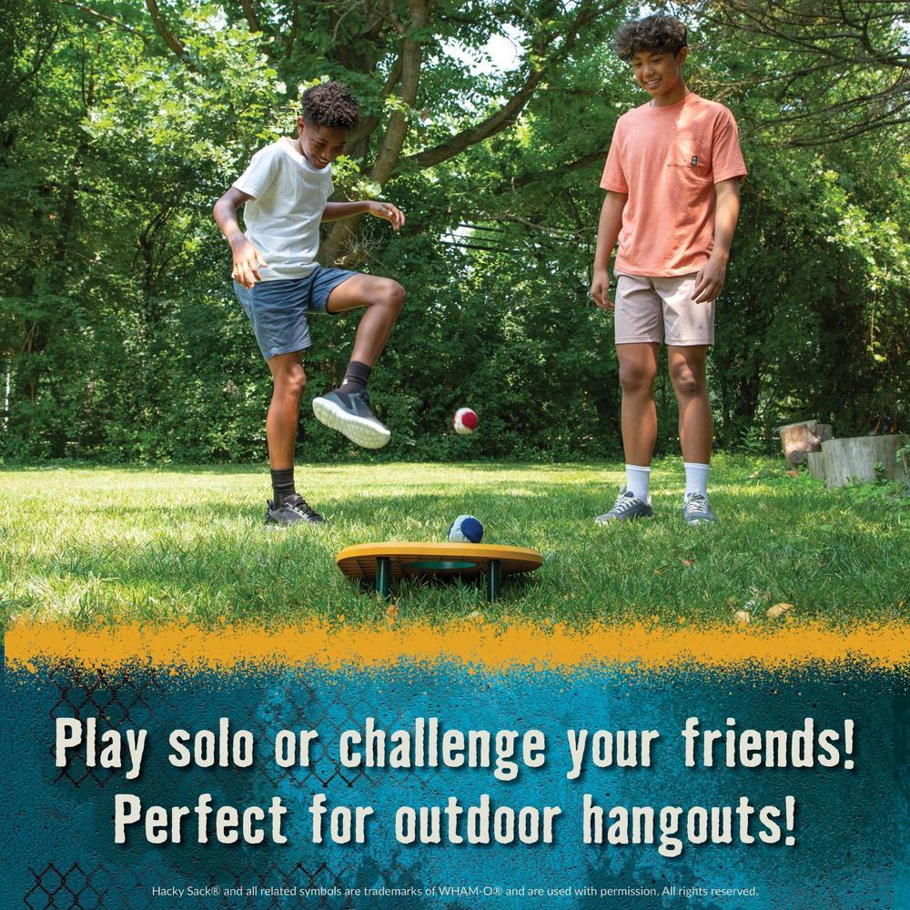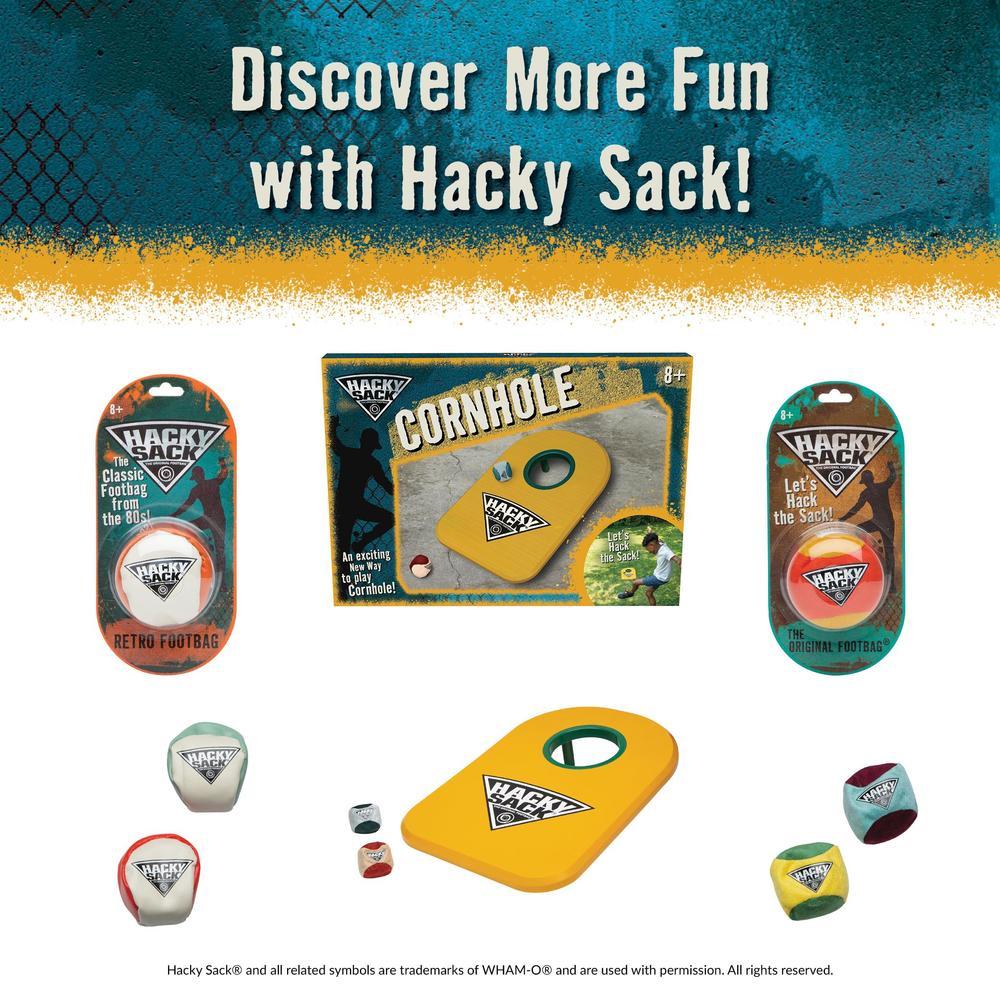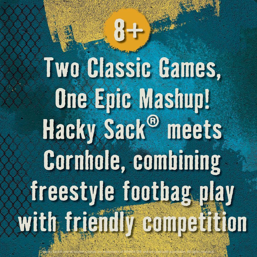 Two Classic Games, One Epic Mashup: Hacky Sack meets Cornhole, combining freestyle footbag play with friendly competition.