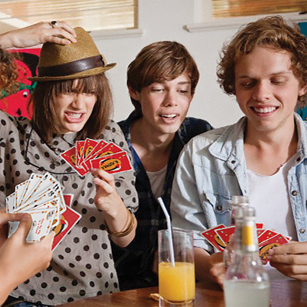 Karma is playfully competitive and infectiously fun! Race to get rid of all your cards by playing a card of equal or higher value, but watch out…if you can’t play a card, you have to take the whole discard pile! Luckily, there are Karma cards that could get you out of trouble…and maybe cause trouble for someone else! Use them wisely, because “what goes around comes around”! It’s a game of elimination, with multiple winners, and is a blast for the whole family! For 2 to 6 players (combine two games to accommodate up to 12 players).