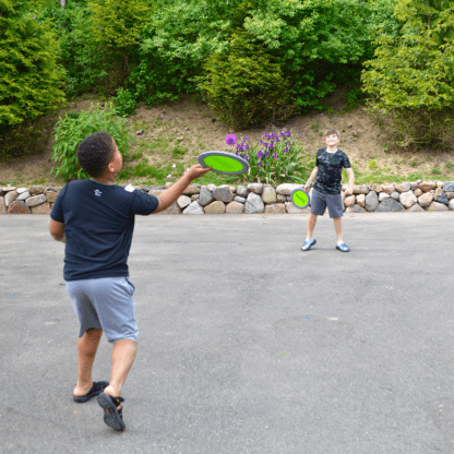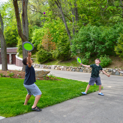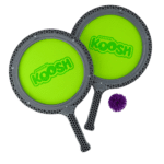 Swing into action with the Koosh Paddle Play Set! The same quality construction that has made Koosh® a top toy for decades has so many awesome ways to play! With two paddles for twice the fun, the Paddle Play Set works for individual or partner games! See how high you can bounce the Koosh ball on your own or try and bounce it back and forth with a friend for as long as you can! The paddles are lightweight and have plenty of bounce-ability for maximum enjoyment. Koosh is great for playing indoors, outdoors, at home, or on the go. Designed for effortless play, Koosh is easy to catch but hard to put down!