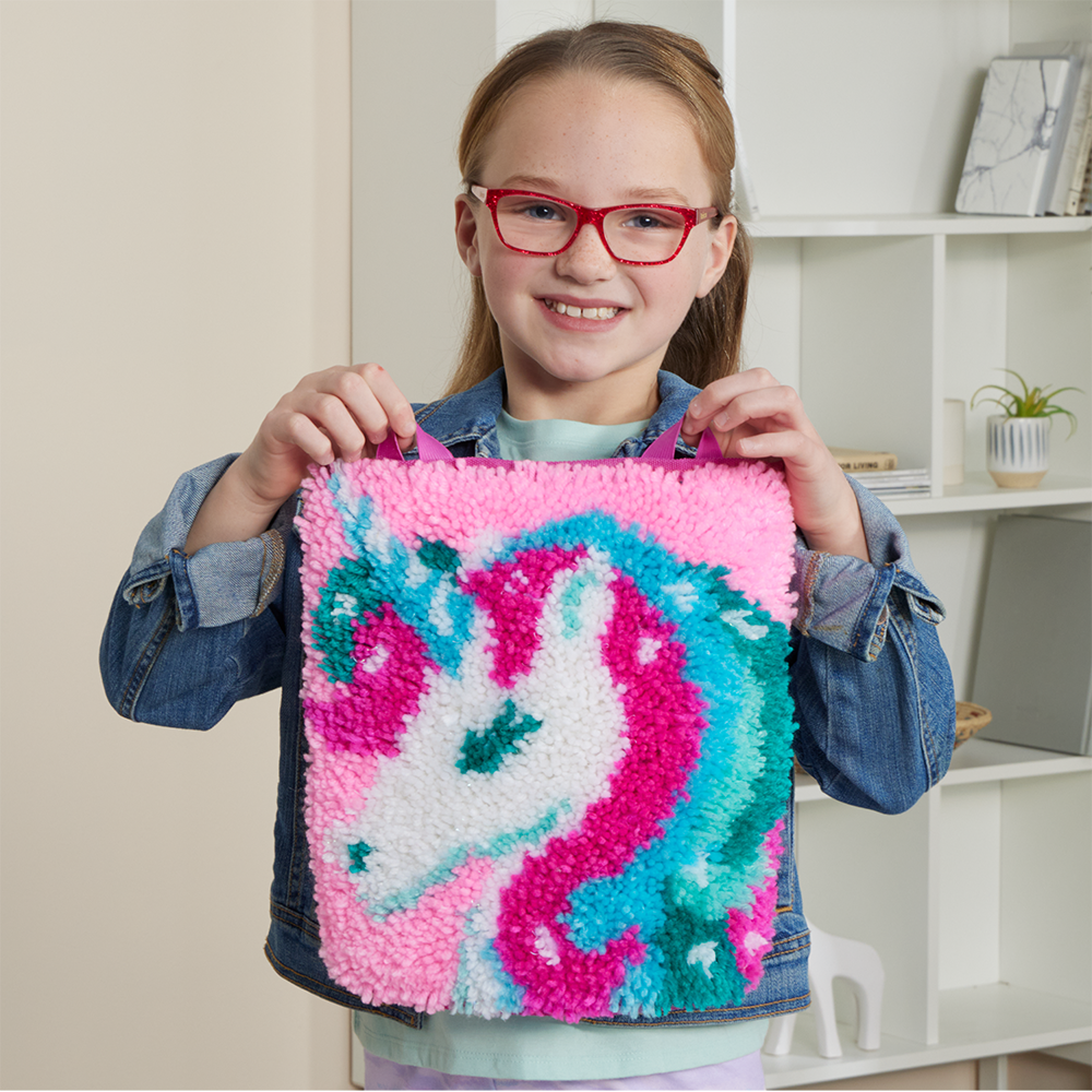 The classic latch hook craft kit is back! LatchKits are a fun and easy-to-learn craft—just loop, hook, and pull! Everything you need is included: the handy latch hook tool, pre-cut yarn and color-coded, easy-to-follow canvas make getting started on your project a snap. The sturdy canvas features fabric-lined edges and hanging loops to create your very own soft and fuzzy design that’s ready to hang on your wall or use as a mini-rug—it’s a great anytime project!
