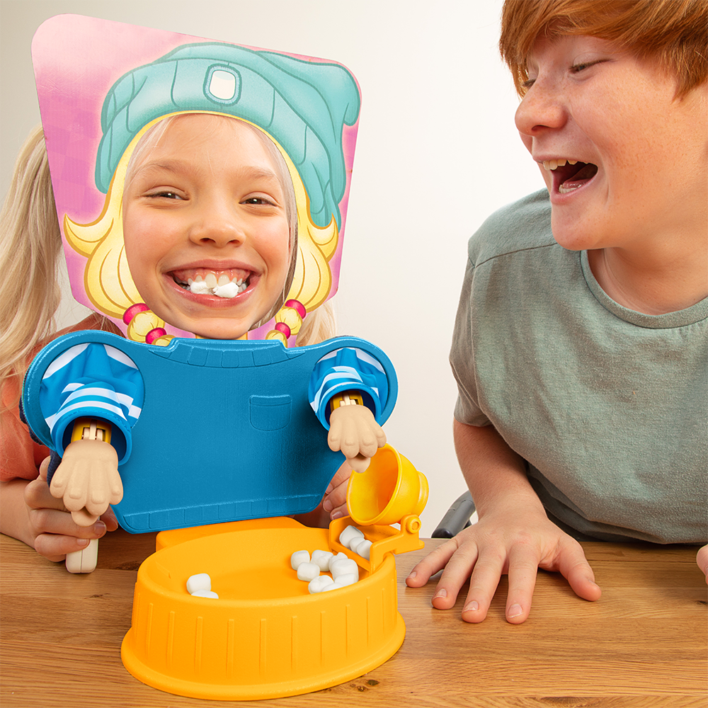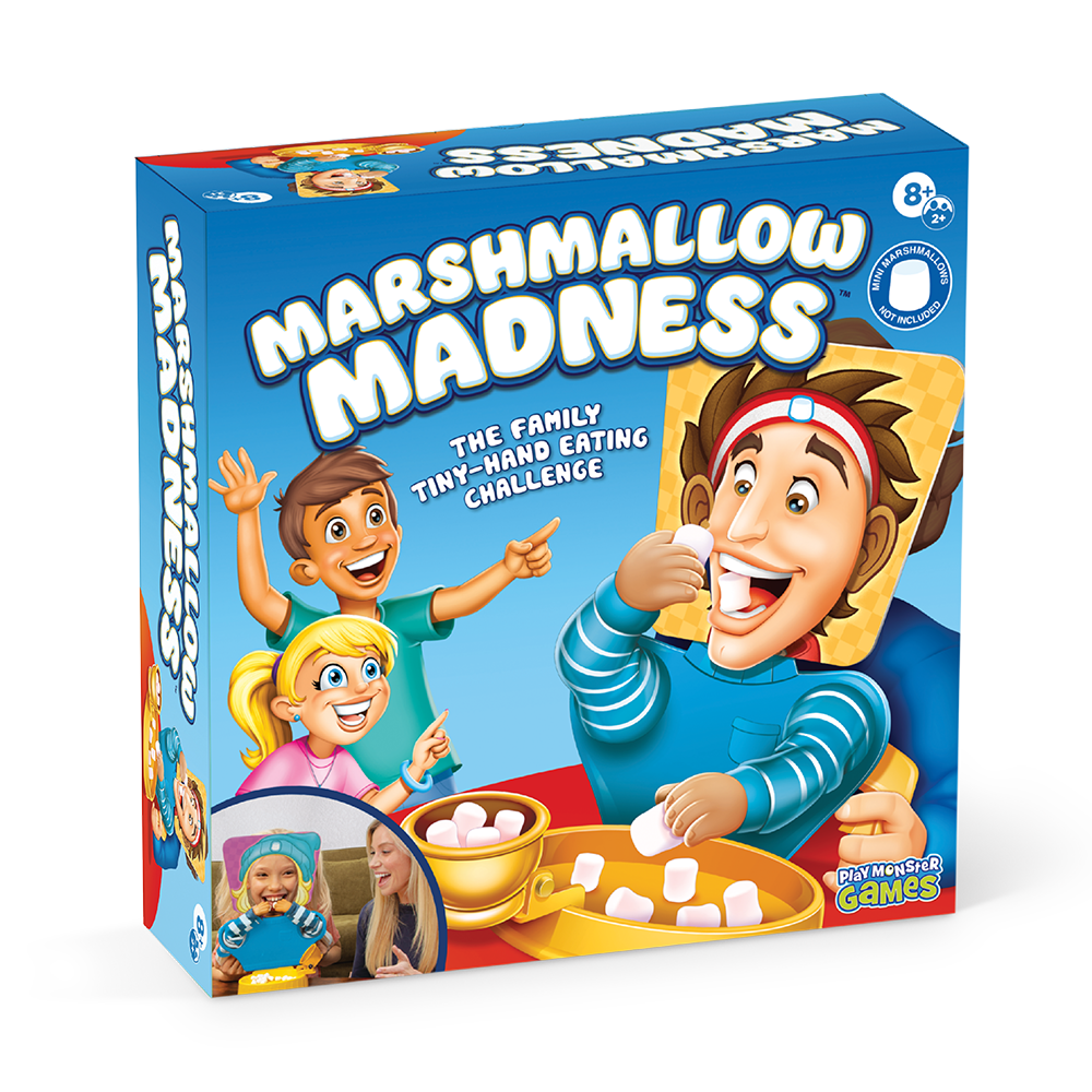Take on the tiny hand-eating challenge with Marshmallow Madness! Grab a bag of mini marshmallows and your favorite people, and get wild! Start the timer and race to see how many marshmallows you can grab with the itty-bitty hands and get into your mouth! In this race to stuff your face, the player who can eat the most mini marshmallows in 60 seconds is the winner! This game is family fun for ages 8 and up, 2 or more players. Includes all the pieces to assemble your tiny hand figure, including a silly illustrated face plate to pose behind while you race, a sand timer, and instructions. Mini marshmallows are not included.