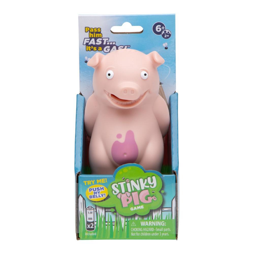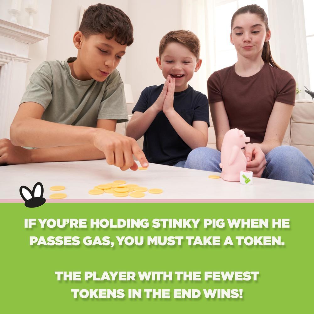 Poke Stinky Pig’s belly to hear him sing, and then roll the die to see which way to pass him. Do it fast…pass him left, pass him right, roll again…but hurry before he…toots! If you’re holding Stinky Pig when he passes gas, you must take a token. But then keep playing…quickly…and the player with the fewest tokens in the end wins!