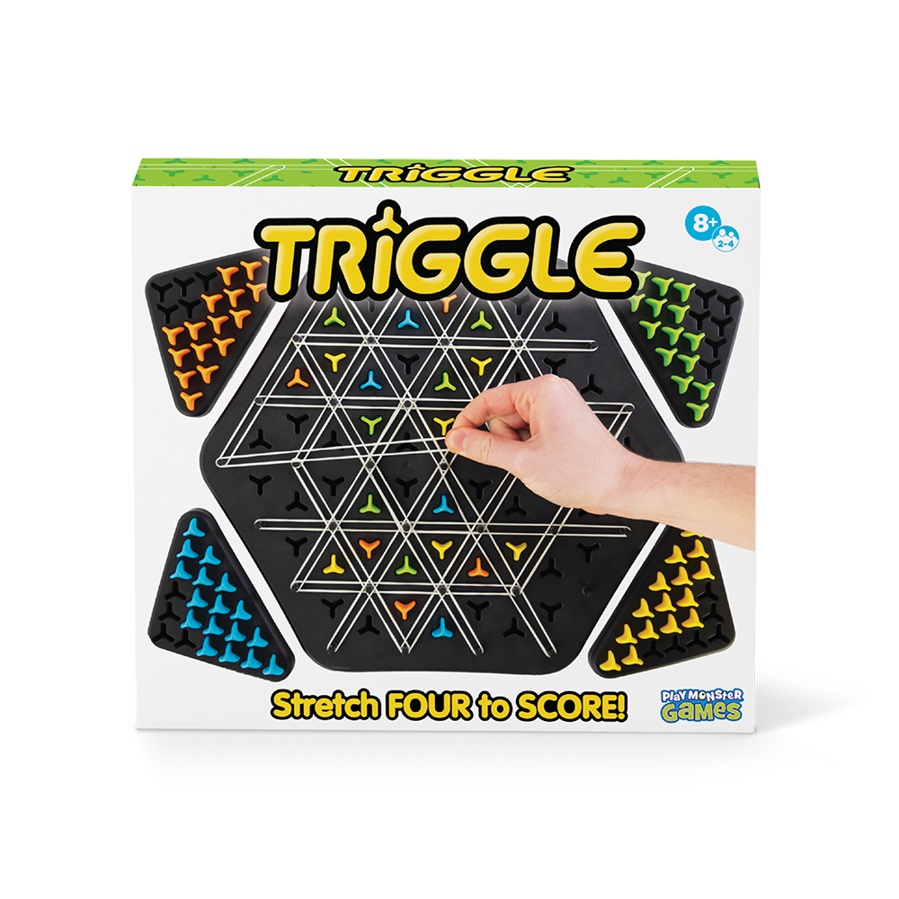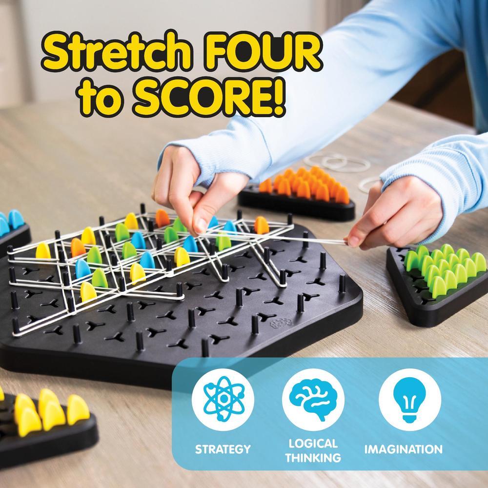Their moves become your win in this unique territory-grabbing game! On each turn, players stretch a rubber band across four posts. Whenever you complete a triangle, you get to claim it as your own with one of your pegs. Strategy skills will be stretched. Deception will be intertwined into every move. Do you have the foresight to claim the most triangles to win?